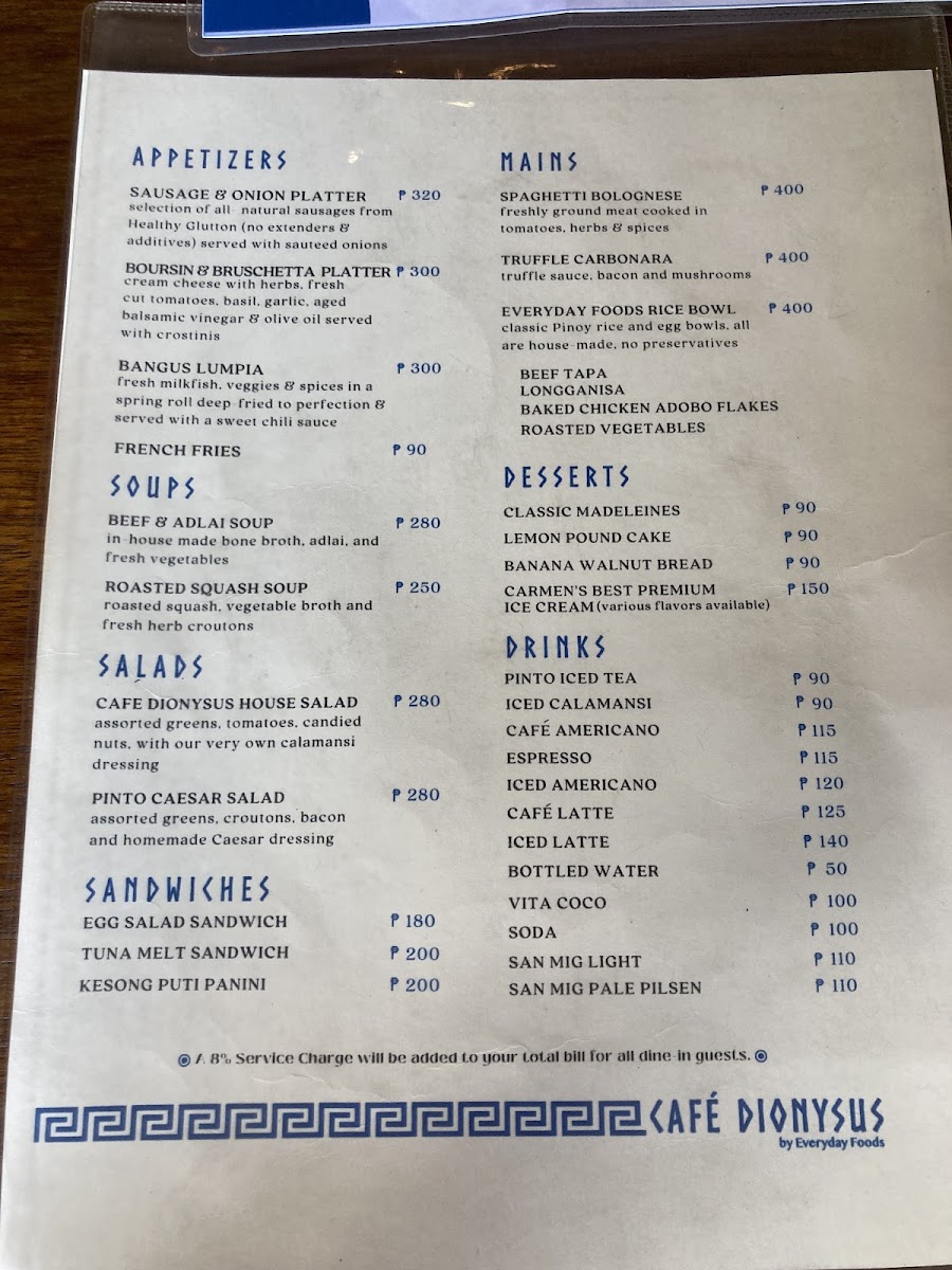 Café Dionysus Menu